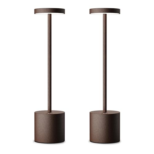 HYMZP Rechargeable Cordless Table Lamps, 34CM Portable 6000mAh Battery Table Light, 3 Color Stepless Dimming LED Table Light with Memory Function, for Outdoor/Patio/Restaurant (2 Pack Rust)