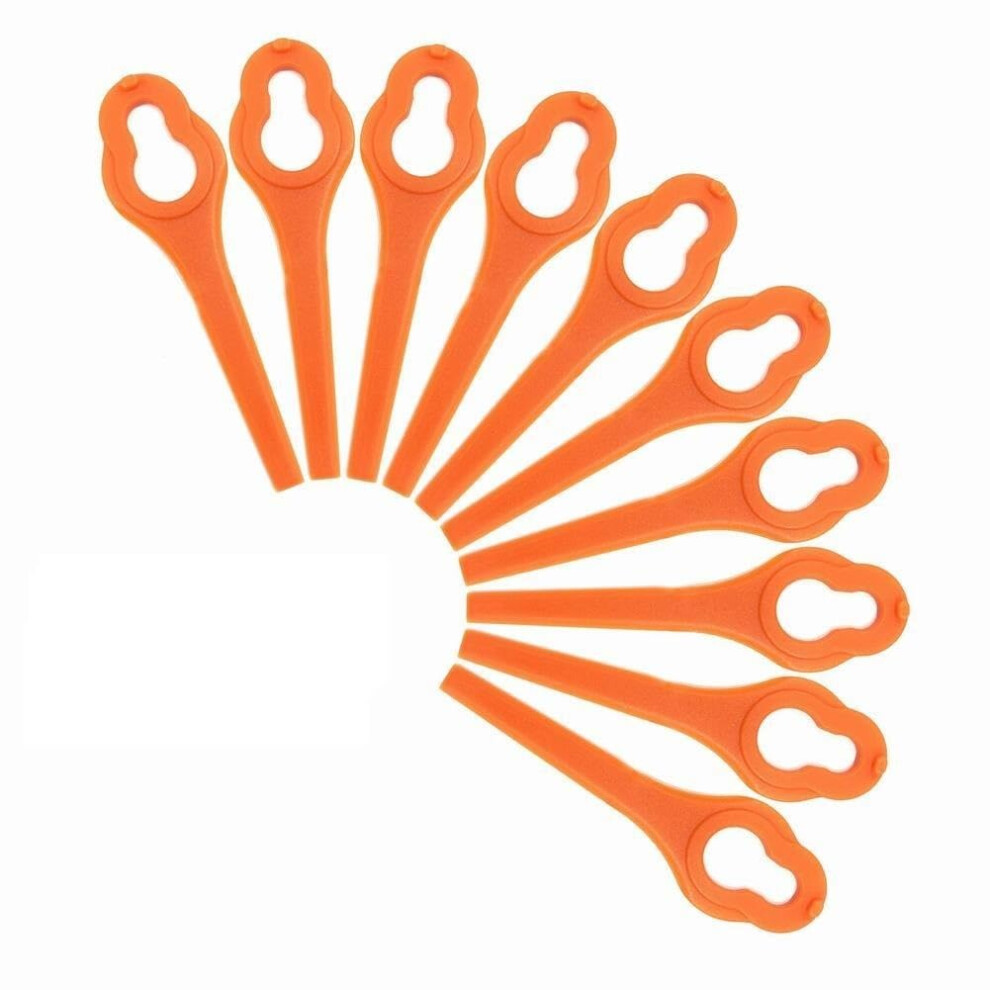 Mower Blades For Aldi Ferrex FAR 20-1 20V/40V Cordless Grass Strimmer 9.5x2.8 Cm Plastic 10 Pack Orange