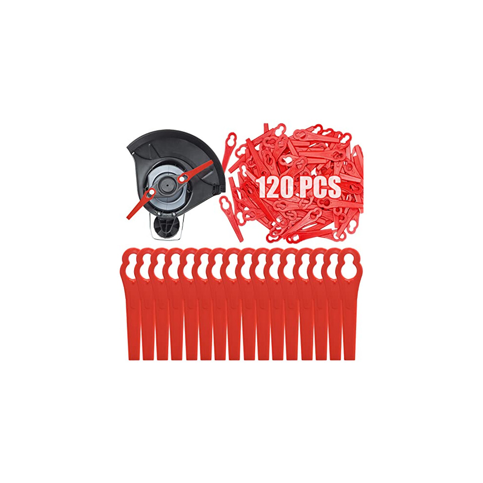 120 Pcs Grass Trimmer Replacement Blades, 83 mm Plastic Garden Mower Blades Cordless Lawn Mower Cutting Blades Lawn Strimmer Accessories Tool for Swi