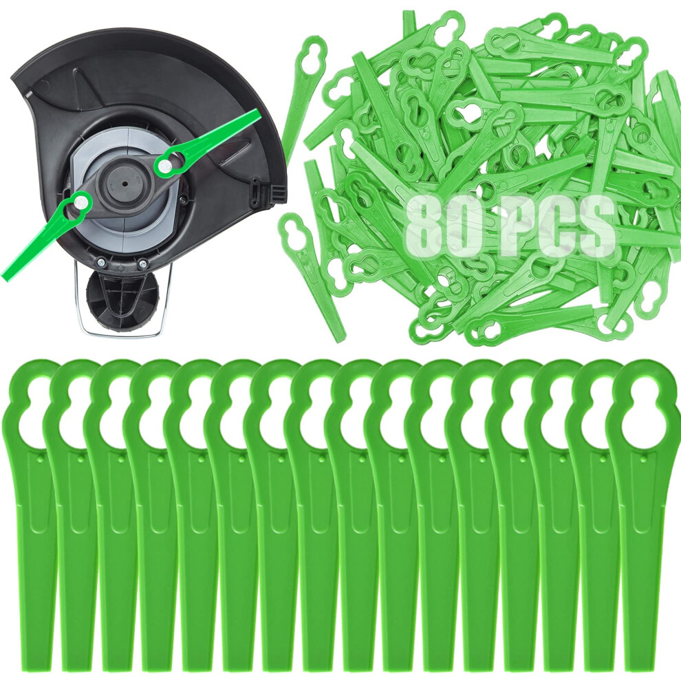 Beamely 80 Pcs Grass Trimmer Replacement Blades, 83 mm Plastic Garden Mower Blades Cordless Lawn Mower Cutting Blades Lawn Strimmer Accessories Tool