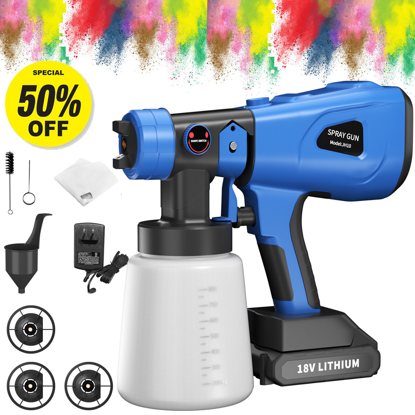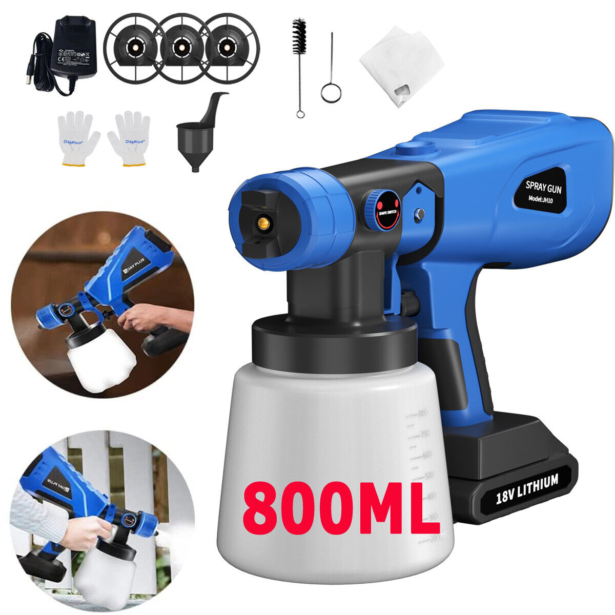 Electric Spray Gun 800ML 200W Cordless Paint Sprayer With 4 Nozzles For B4 SET