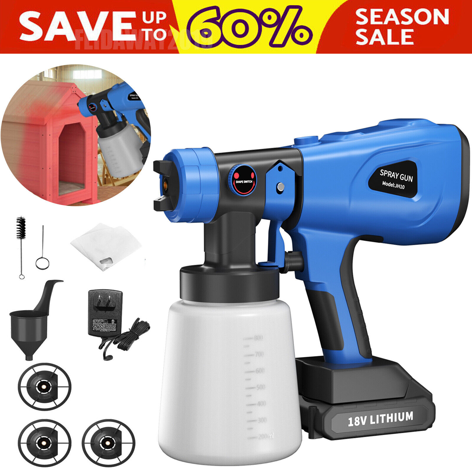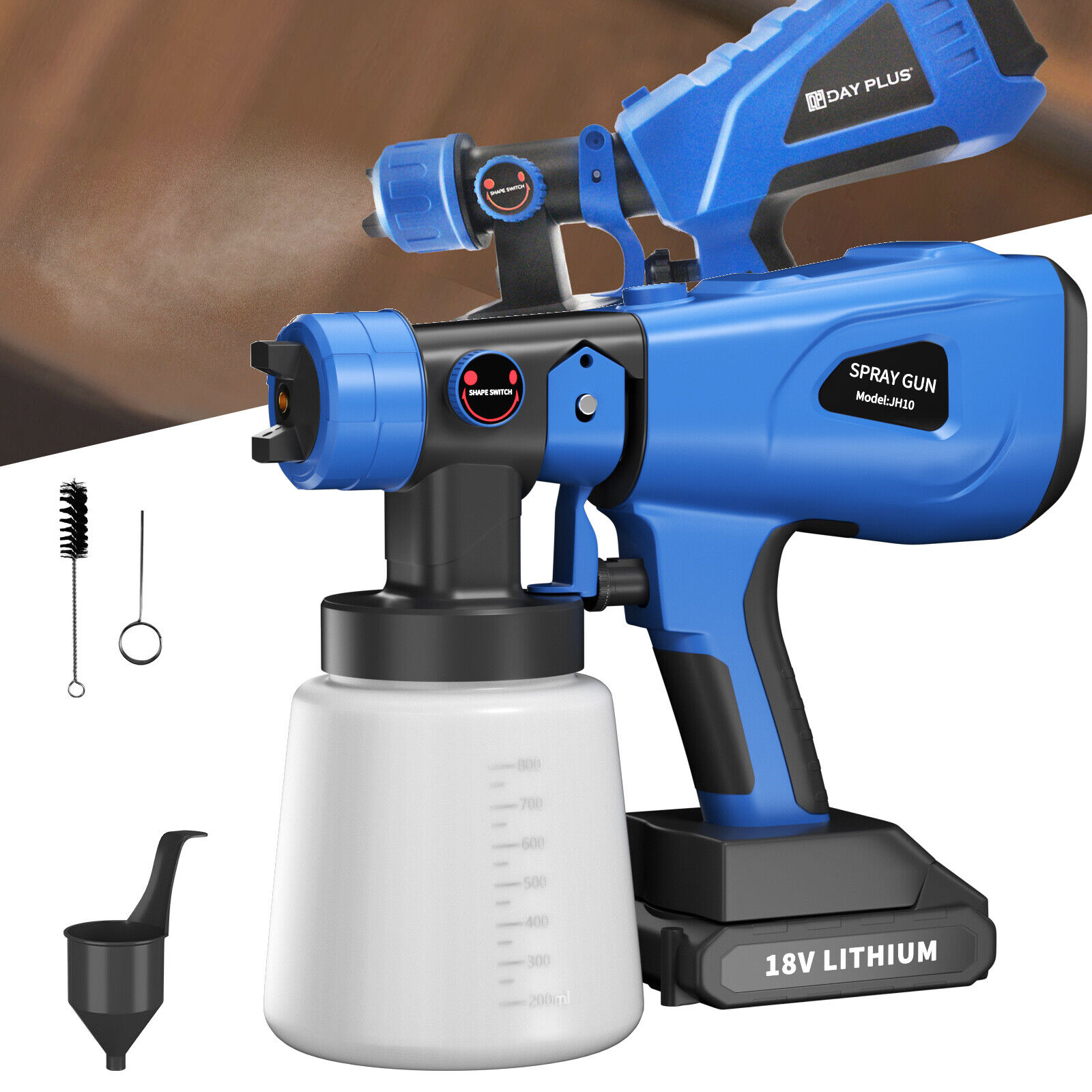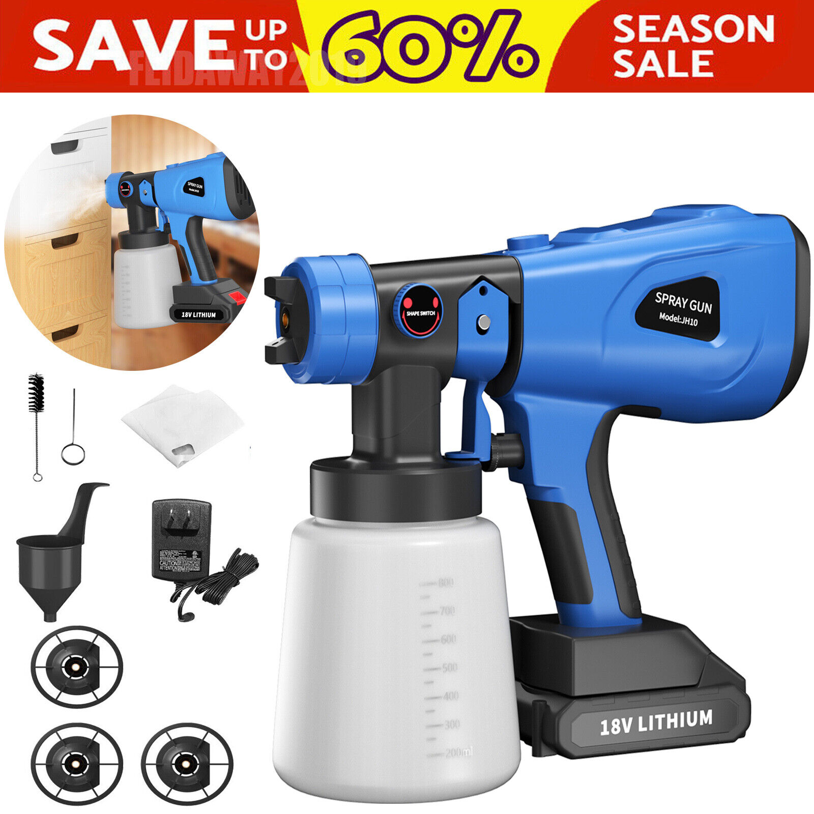 、Cordless Paint Sprayer 200W Battery Powered Electric Paint Spray Gun With 8