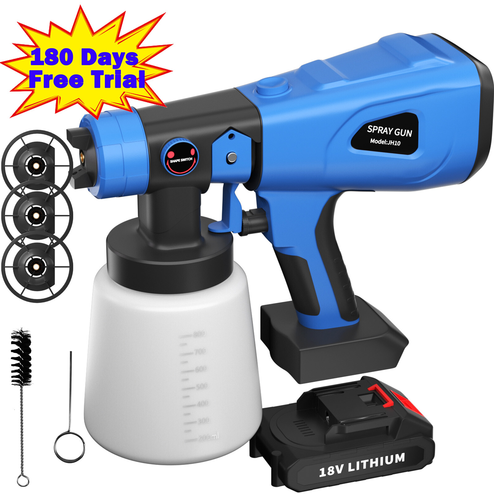 200W Cordless Electric Paint Spray Gun with 800ML Container & 4 Nozzles