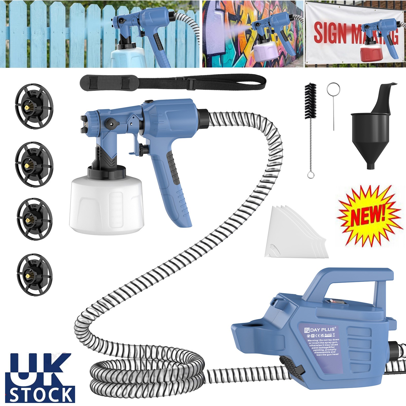 Spray Gun Cordless Fence Wall Paint Sprayer Electric Airless HVLP 1000ml UK