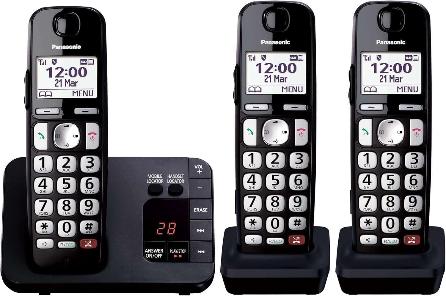 Panasonic KX-TGE823EB Digital Cordless Phone About 40 minutes Answering Machine with Nuisance Call Block and Dedicated Key, Amplified Sound Triple Black