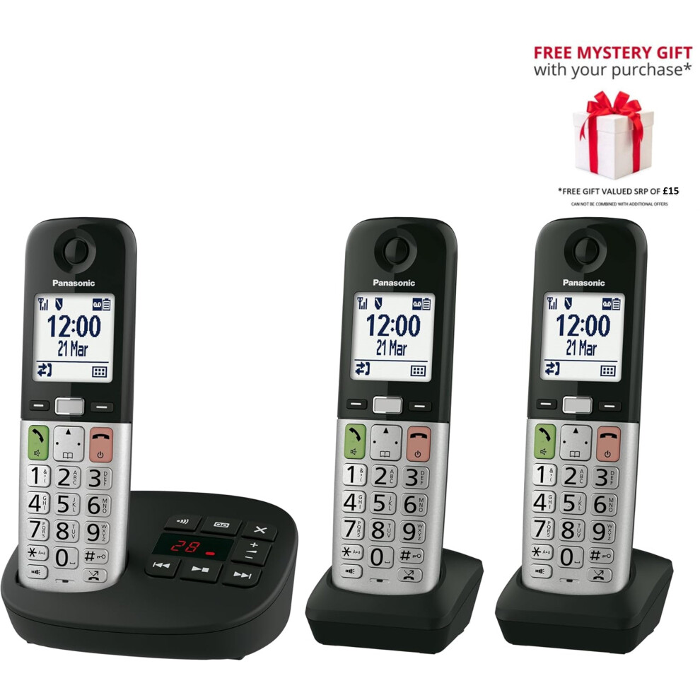Panasonic KX-TGU433EB Digital Cordless Landline Phone, Answering Machine, 3 Handsets - Free Gift RRP 15!