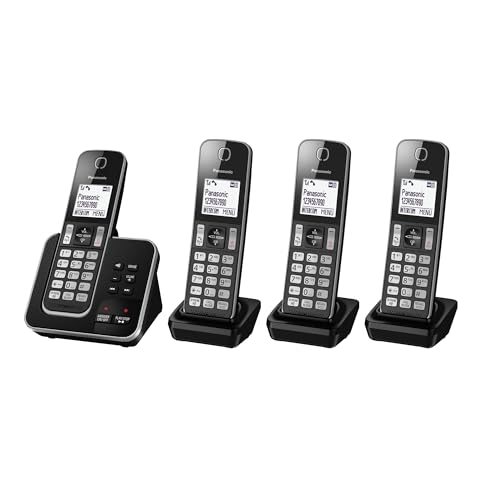 Panasonic KX-TGD624Cordless Home Phone with dedicated call block key for easy call block registration and Digital Answering Machine – Black and Silver (Pack of 4)