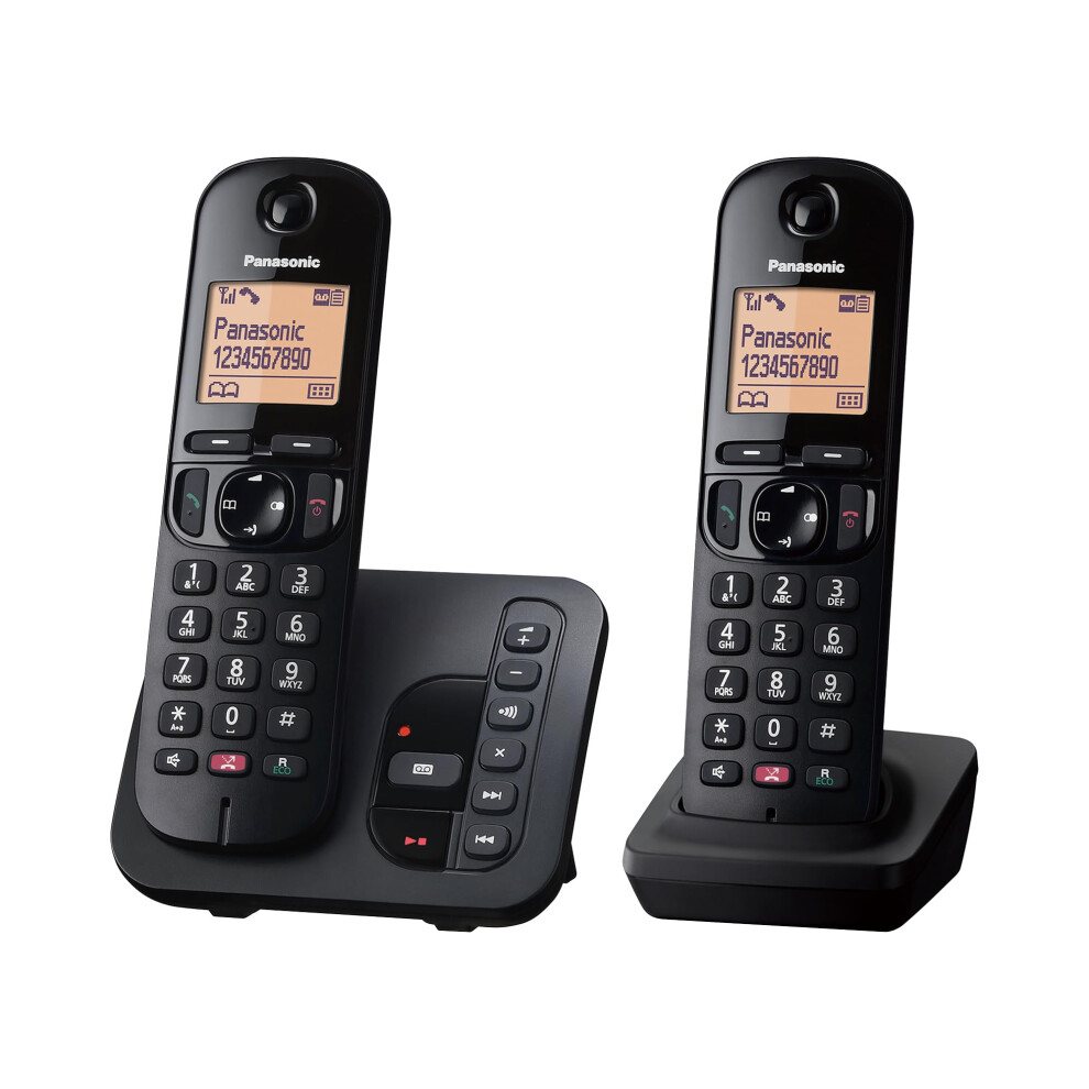 Panasonic KX-TGC222EB DECT Cordless Phone with Answering Machine, 1.6 inch Easy-to-Read Backlit Display, Nuisance Call Blocker, Hands-Free Speakerphone, ECO Mode - Black, Twin Handset Pack