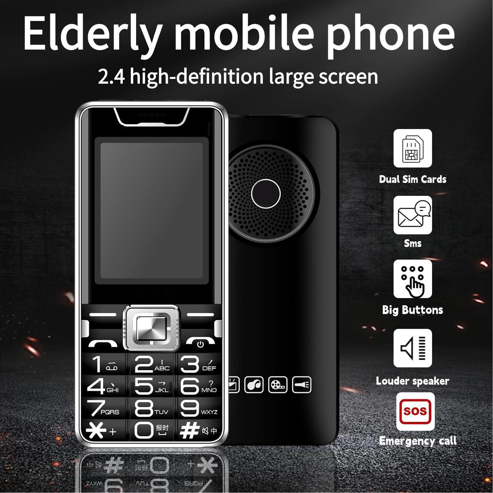 Senior Mobile Phone Ultra Slim Large Volume Big Buttons 2.4 Inch Color Display Double SIM Double Standby with Flashlight, for Seniors ABSC (Black)