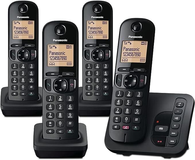 Panasonic KX-TGJ324EB Landline Phone Cordless, House phones, Nuisance Call Blocker, Answer machine, Colour Display, Quad Handset - Black