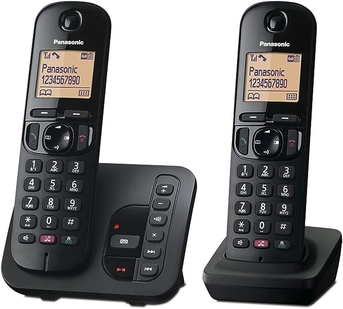 Panasonic KX-TGJ422EB Landline Phone Cordless, House phones, Automated Call Blocker, Answer machine, Colour Display, Twin Handset - Black