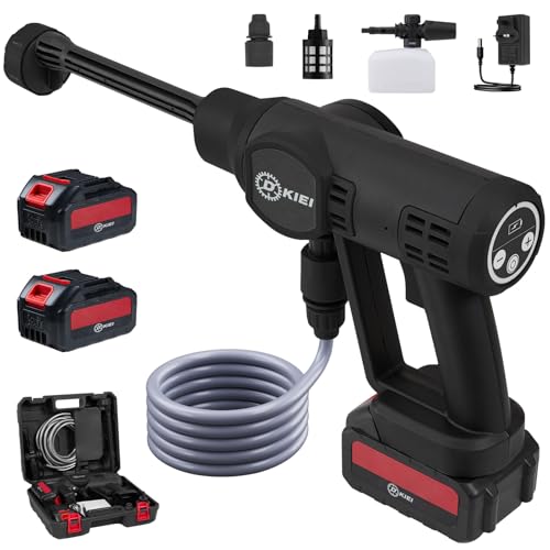 DKIEI Cordless Pressure Washer, 6 in 1 Portable Bushless Power Washer, Electric Jet Washer Kit With 2 x 3000mAh Batteries, Portable Washer Cleaner Washing Cars/Floor/Garden Cleaning & Watering, Black