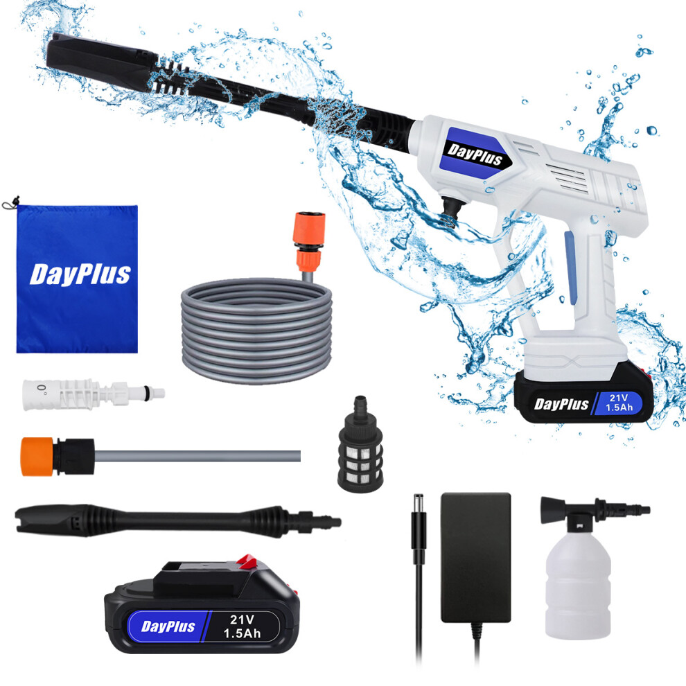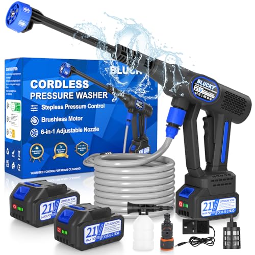 Cordless Pressure Washer, 21V Cordless Power Washer Kit 1500W Cordless High Pressure Washer Gun with 2 Nozzle, 16.5ft Hose, 2 Batteries, Battery Jet pressure Washer for Car Floor Gardening Cleaning