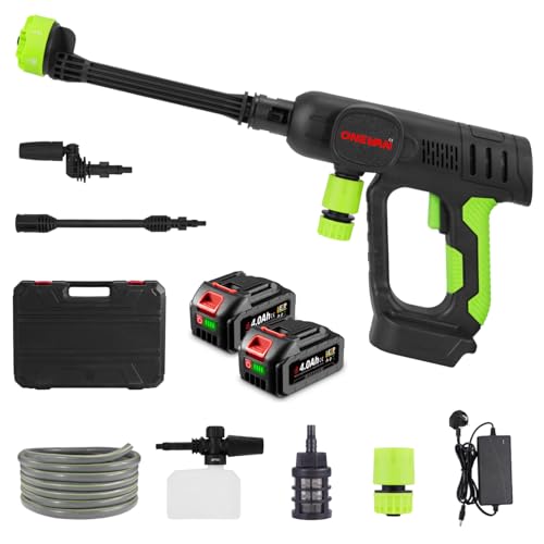 Cordless Pressure Washer, 6 in 1 Portable Power Washer for Patio and Car, Battery Pressure Washer with 2x4.0Ah Battery for Washing Cars/Floor/Garden Cleaning & Watering (Black-1)