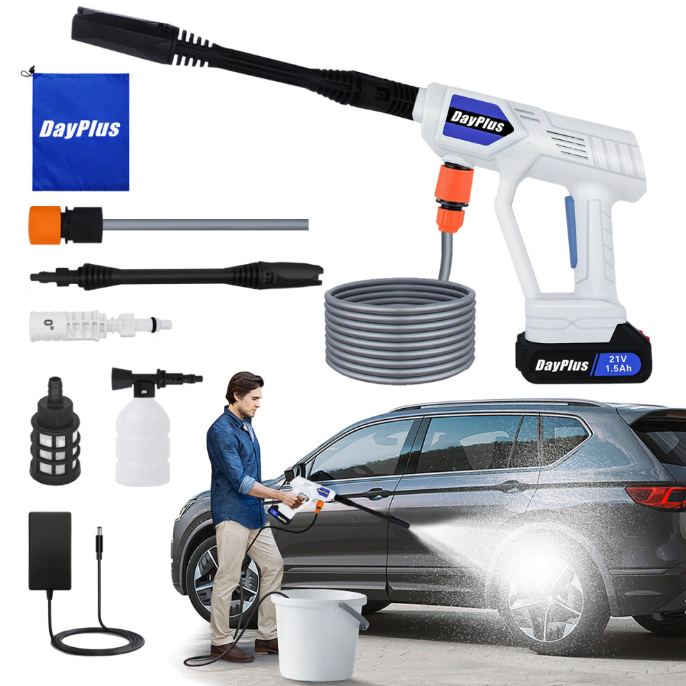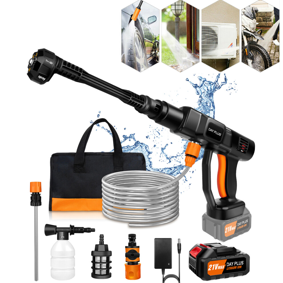 Cordless Power Washer Portable Pressure Washer Jet Car Washer Gun with Battery,Charger,Nozzles, Foam Generator,Hose,for Patio Cleaning and Car Washing