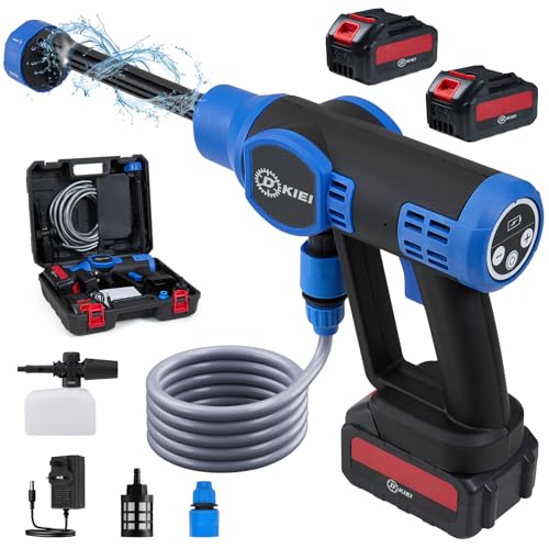 DKIEI Cordless Pressure Washer, 6 in 1 Portable Bushless Power Washer, Electric Jet Washer Kit With 2 x 3000mAh Batteries, Portable Washer Cleaner Washing Cars/Floor/Garden Cleaning & Watering, Blue