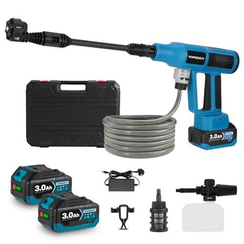 Yofidra Cordless Pressure Washer, 300W Portable Power Washer with Digital Display, 2.8MPa, 5L/min Flow, 4 Adjustable Modes, Max. 10m Range, Jet Wash for Car/Patio Cleaning (2x3.0Ah Batteries)