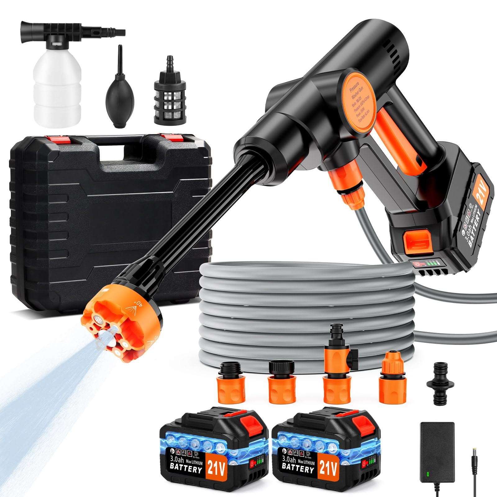 Cordless Pressure Washer,21V 45 Bar/652 PSI Portable Pressure Washer with 2PCS 3.0Ah Battery,6-in-1 Adjustable Nozzle,5m Hose Pressure Cleaner for Car/Floor/Garden Cleaning & Watering