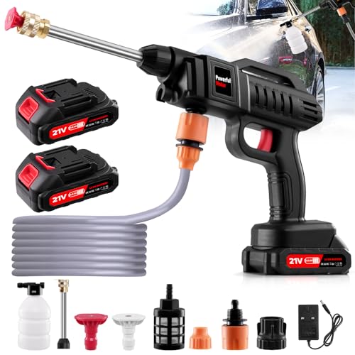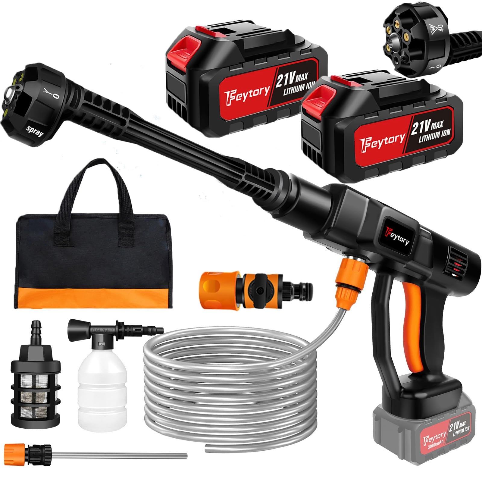 The Fellie Cordless Electric Pressure Washer, Portable Pressure Washer, Jet Washer Gun Kit With 2 * 21V 1500mAh Battery/2*Spray Nozzles/Hose, Car Wash Spray Gun for Car/Floor/Garden Cleaning