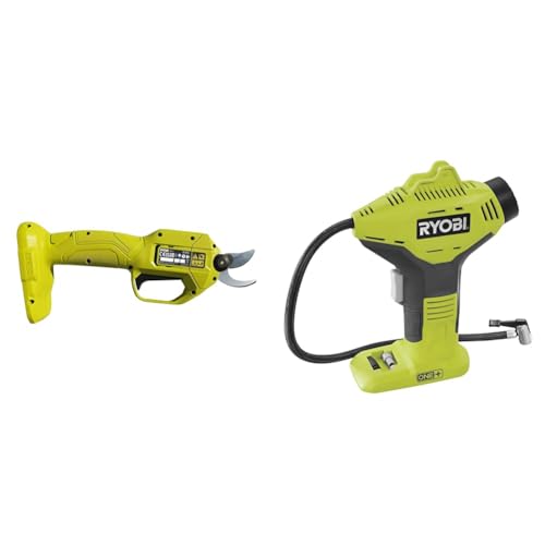 Ryobi RY18SCA-0 18V ONE+ Cordless Secateurs (Bare Tool), Black & R18PI-0 18V ONE+ Cordless High Pressure Inflator (Body Only), Grey