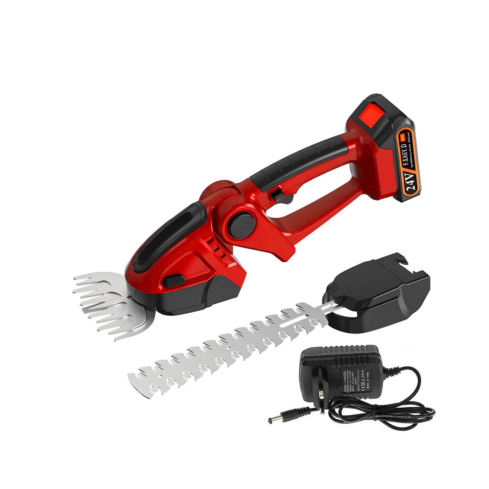 (US Red)Handheld Lawn Trimmer 24V 2-in-1 - US Plug, Cordless Lawn Mower & Pruning Shears for Garden Shrub Tools