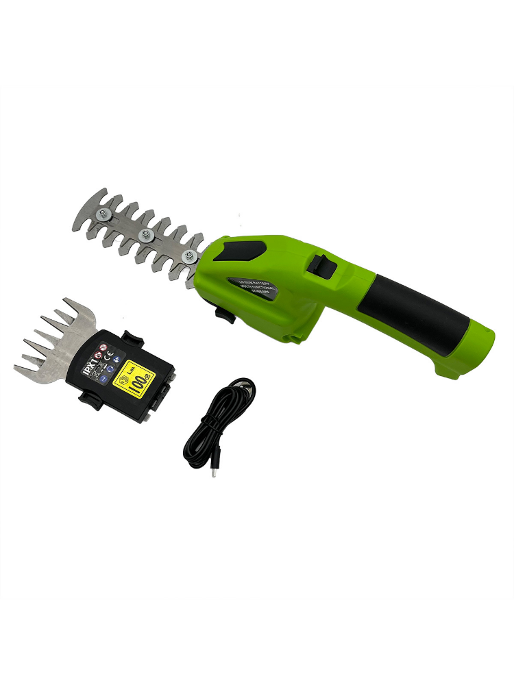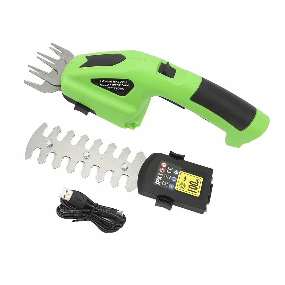Cordless Grass Shears Non-Slip Handle 2-In-1 Hedge Trimmer 7.2V Electric Shrub Trimmer 2.0Ah Battery Charging Cable Green