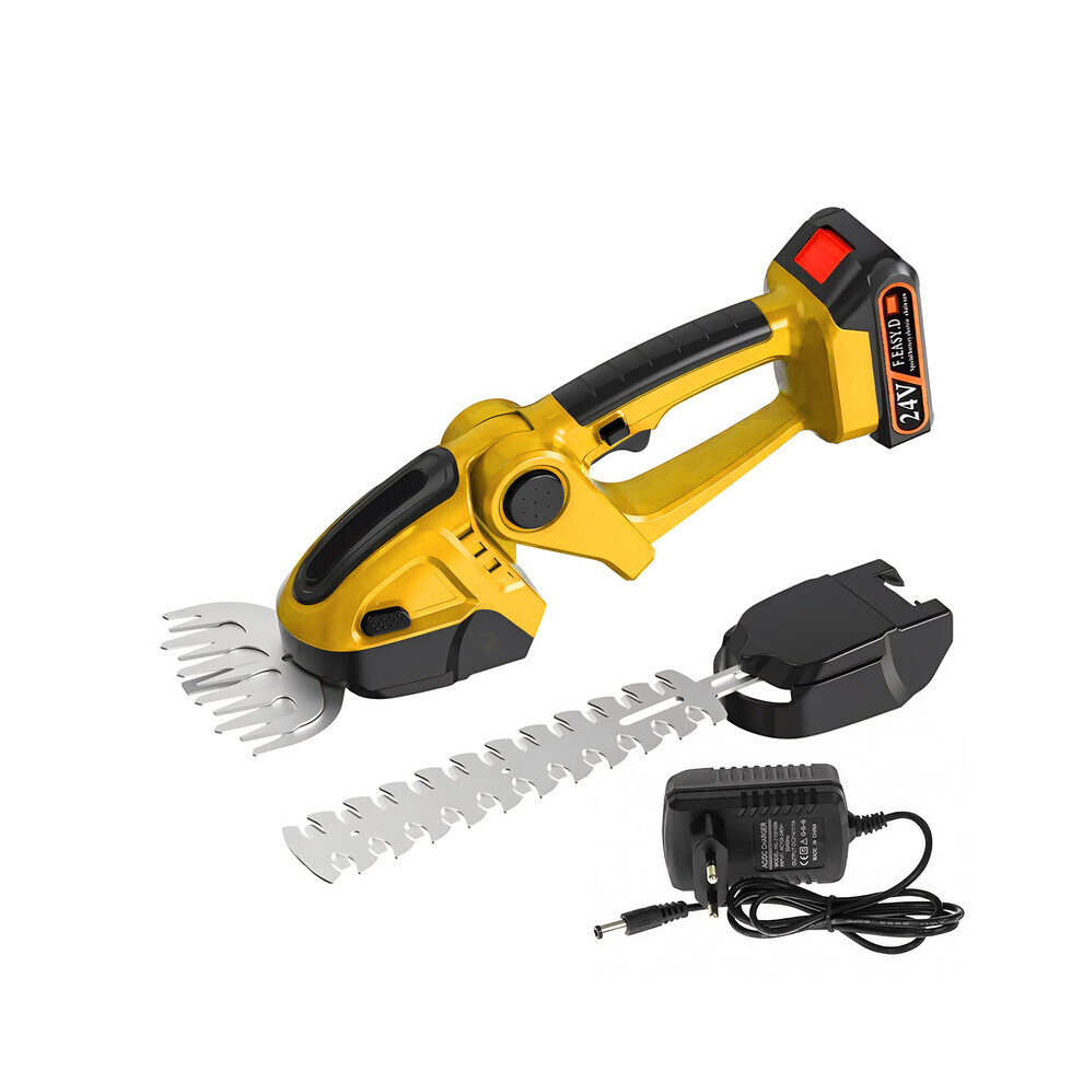 (US Yellow)Handheld Lawn Trimmer 24V 2-in-1 - US Plug, Cordless Lawn Mower & Pruning Shears for Garden Shrub Tools