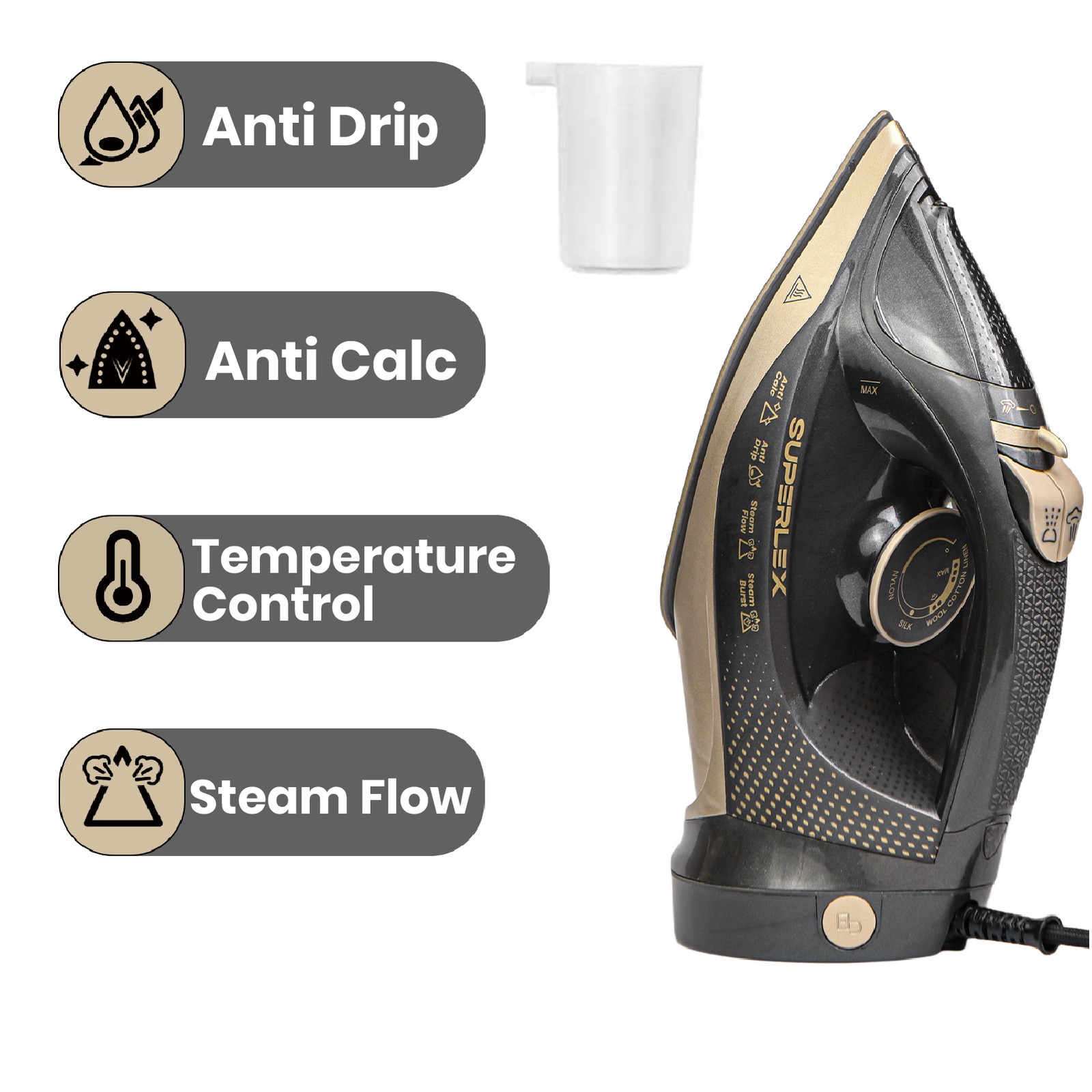 SUPERLEX 2-In-1 Cordless Steam Iron Ceramic Soleplate 90-Second Preheating 2600W