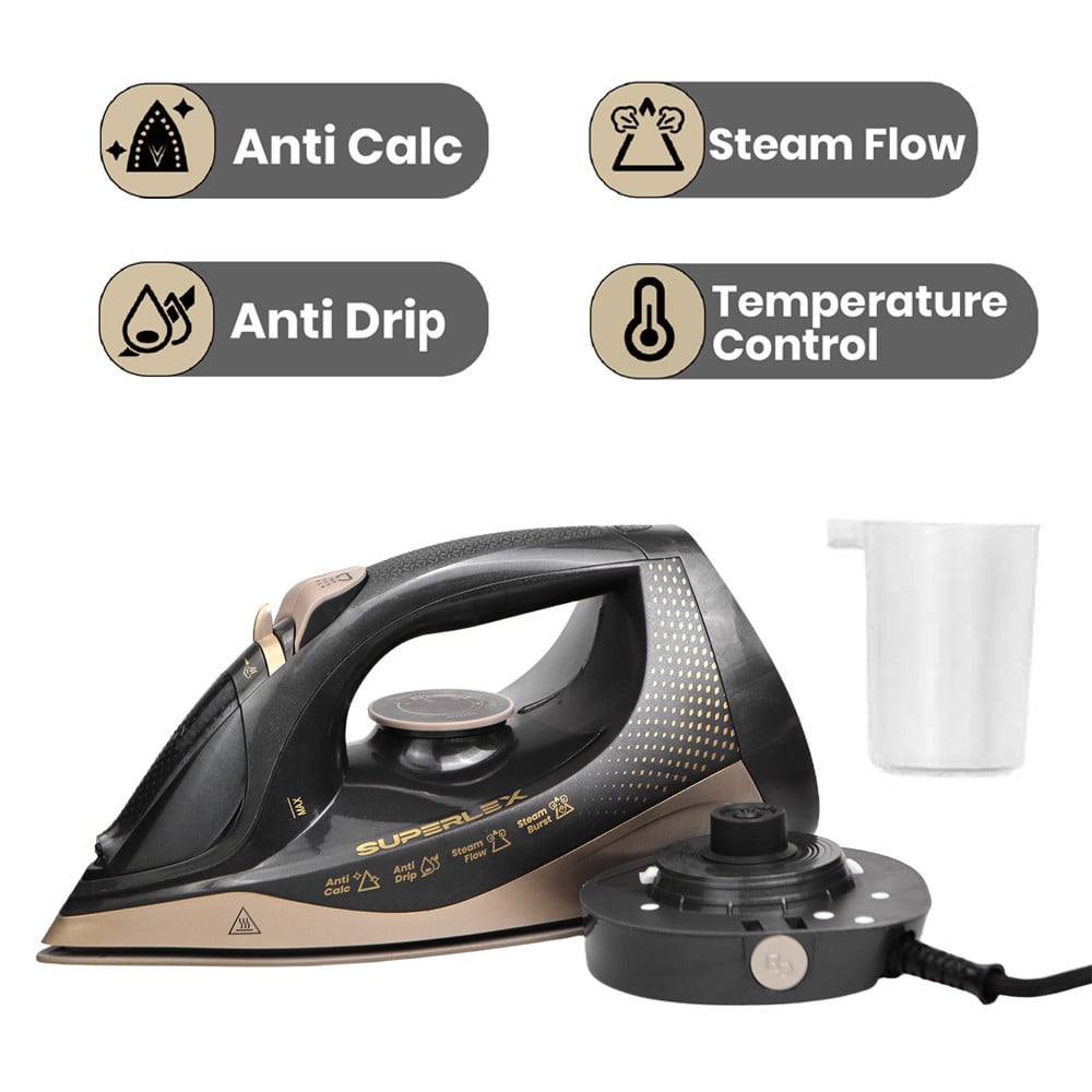 SUPERLEX 2 in 1 Cordless Steam Iron Use Corded/Cordless Ceramic Soleplate 2600W