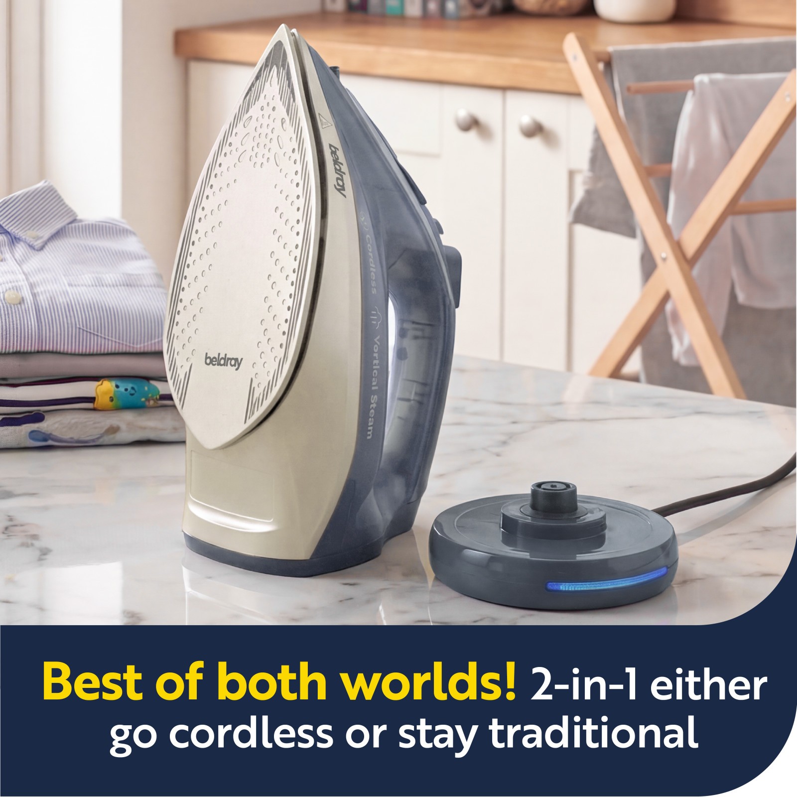 Beldray 2-in-1 Cordless Steam Iron 2600W – Powerful Vertical Steam, Ceramic Sole
