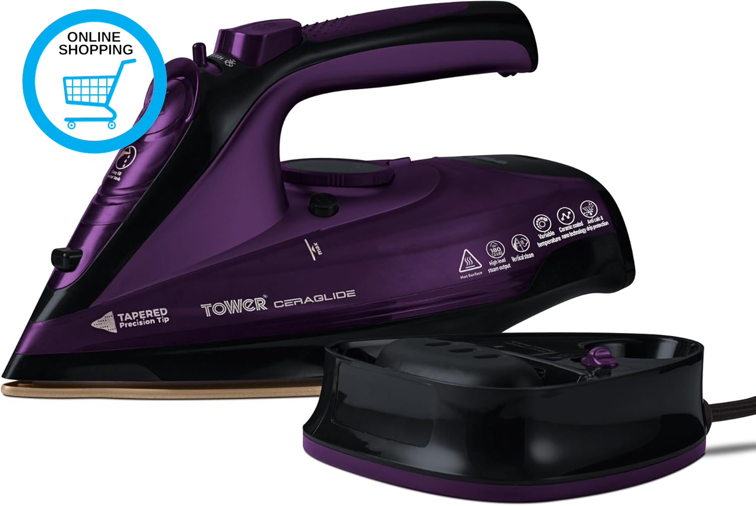 T22008BL Tower CeraGlide 2 in 1 Cord/Cordless Steam Iron 180G Steam Boost 360ml