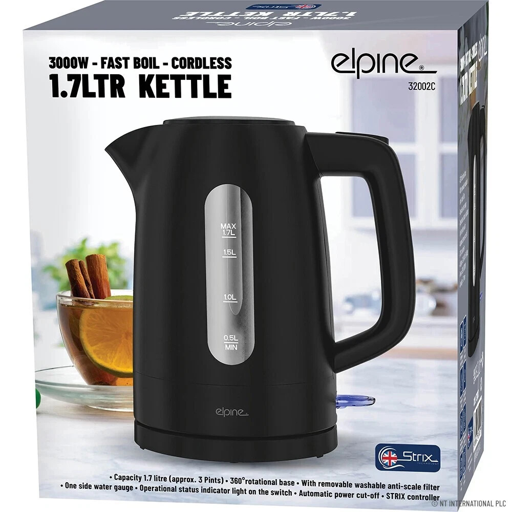 Electric Kettle Cordless Fast Boil 1.7L Hot Water 3000W Kitchen Travel Jug Black