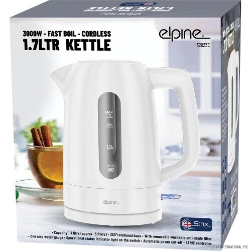 Electric Kettle Cordless Fast Boil 1.7L Hot Water 3000W Kitchen Travel Jug White