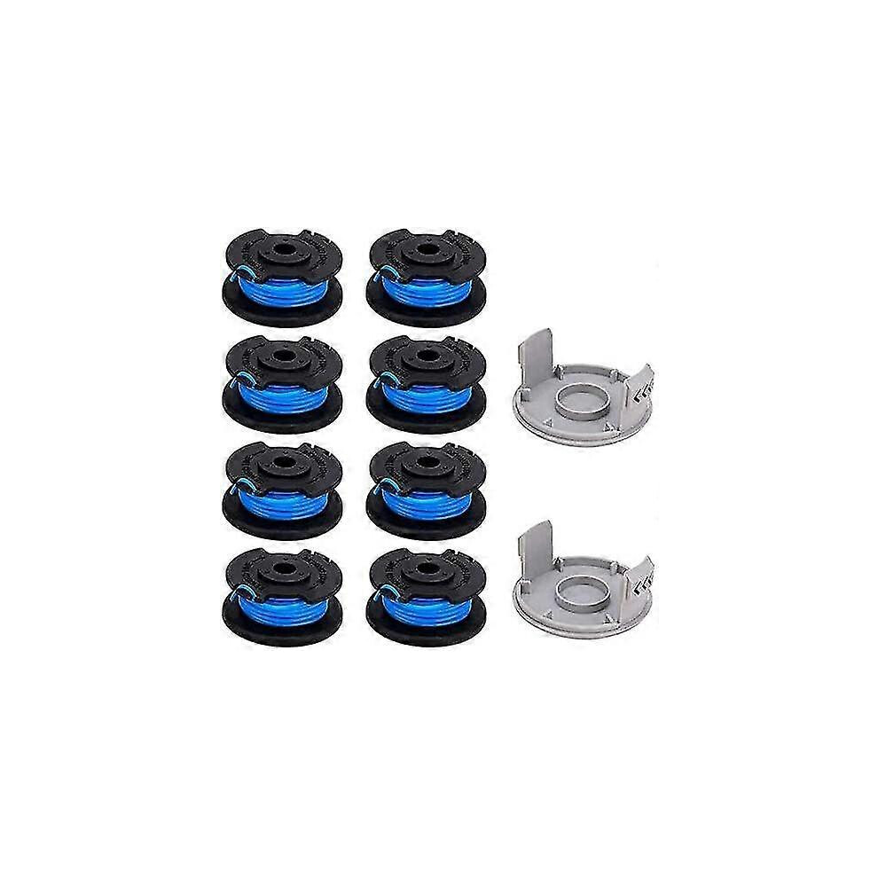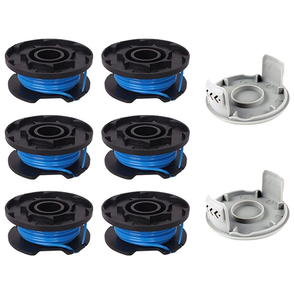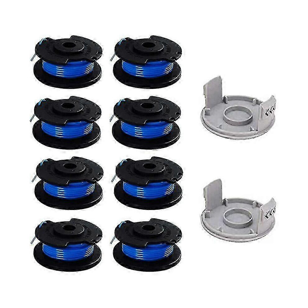 8 Pieces Brush Cutter Replacement Spool, Compatible With Ryobi One+ AC14RL3A-18V 24V 40V, Cordless Line Trimmer 11ft, 6 Spools + 2 Trimmer Caps