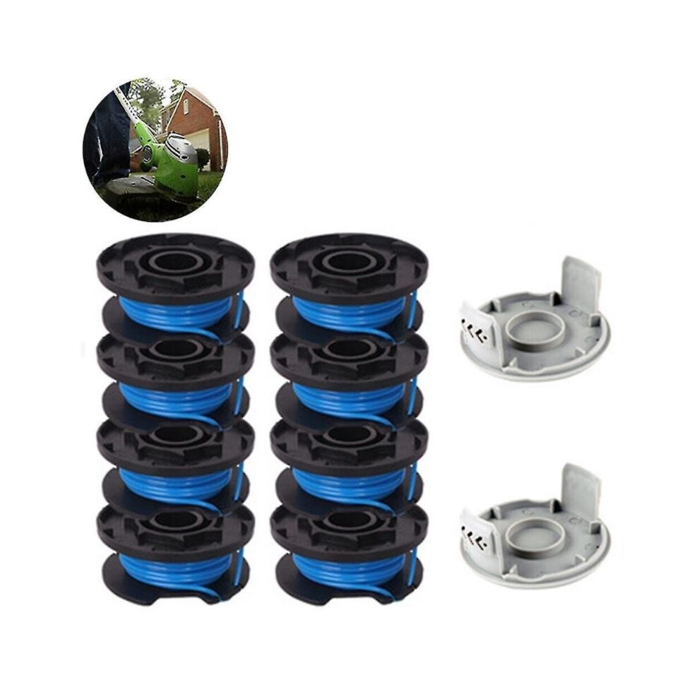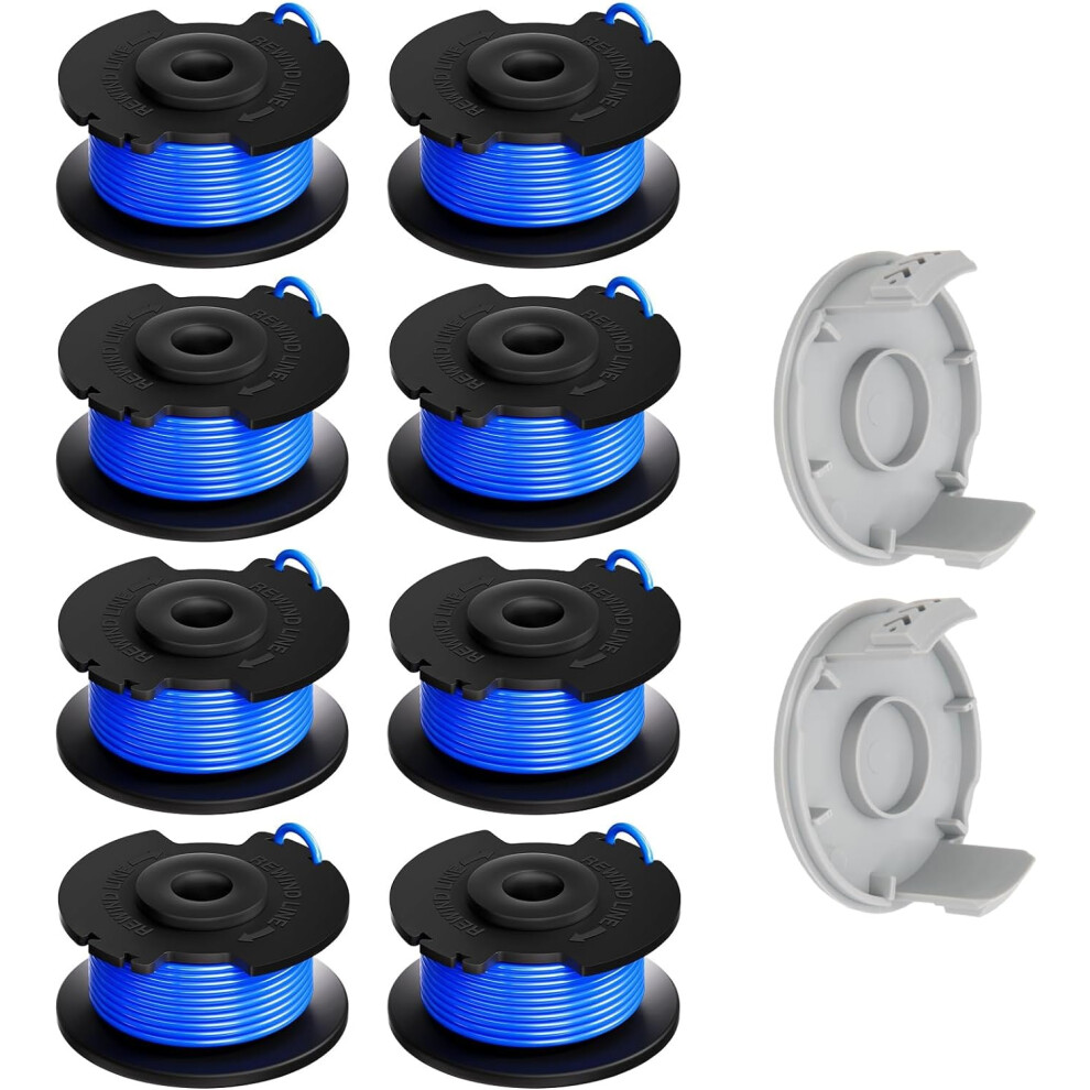 LATERN 8Pcs Ryobi Trimmer Spool Line with Spool Cap, Autofeed Strimmer Trimmer Replacement Reflex Wire for Ryobi 18V 24V 40V Cordless Trimmers