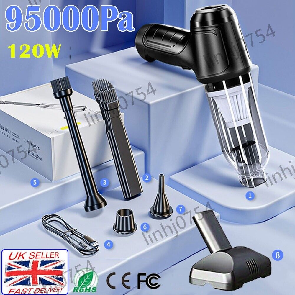 95000Pa Powerful Car Vacuum Cleaner Wet/Dry Cordless Strong Suction Handheld UK