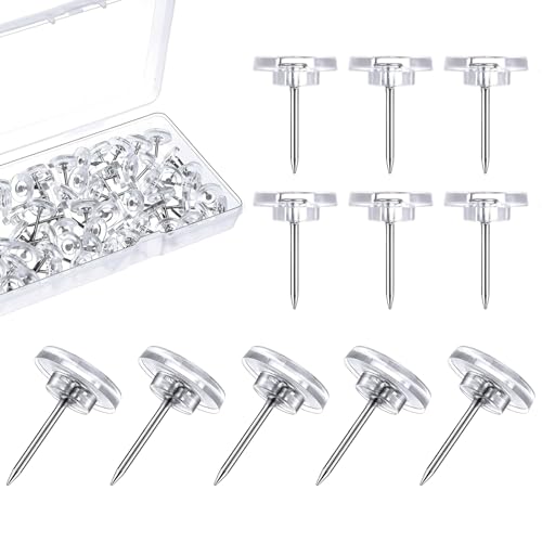 NEDBLUE Clear Push Pins - 120 Drawing Pins with Storage Box, Thumb Tacks for Cork, Notice and Bulletin Boards - Map Pins (Clear)