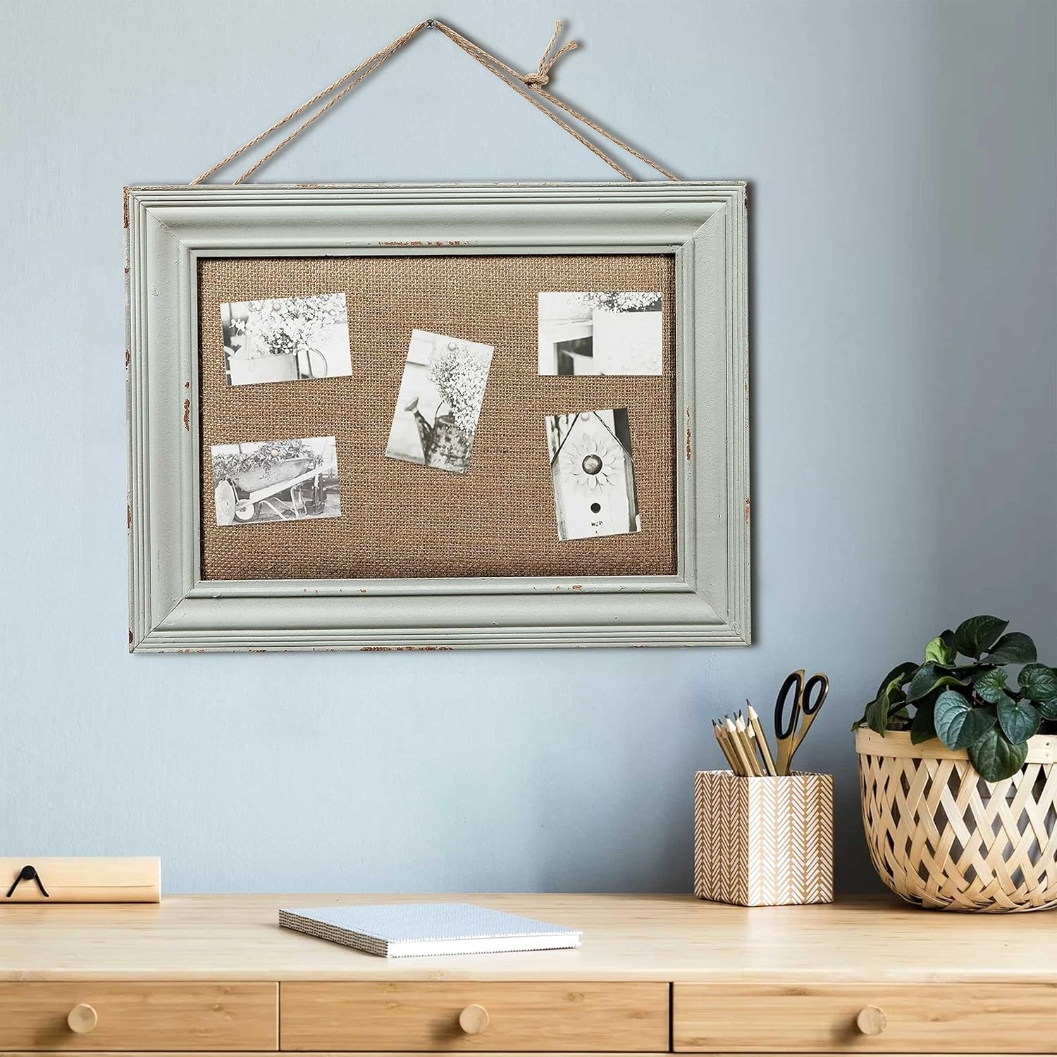 Sintosin Farmhouse Green Cork Notice Boards for Wall, 30 x 40 cm Cute Linen Sma