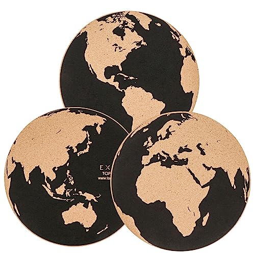 EXERZ 30cm Notice Board World Map 3pcs, Bulletin Boards,Cork Memo Board Stick-On Mounting Non-Residue, Pinnable