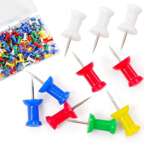 NEDBLUE Multicolor Push Pins - 120 Drawing Pins with Storage Box, Thumb Tacks for Cork, Notice and Bulletin Boards - Map Pins