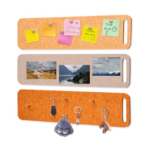 3 Pack Cork Board, Bulletin Board Strips with 20 Push Pins & 10 Sticks Felt Pin Board Notice Boards for Home Office Kitchen, Self Adhesive Pin Board Wall Tiles for Photos Memos