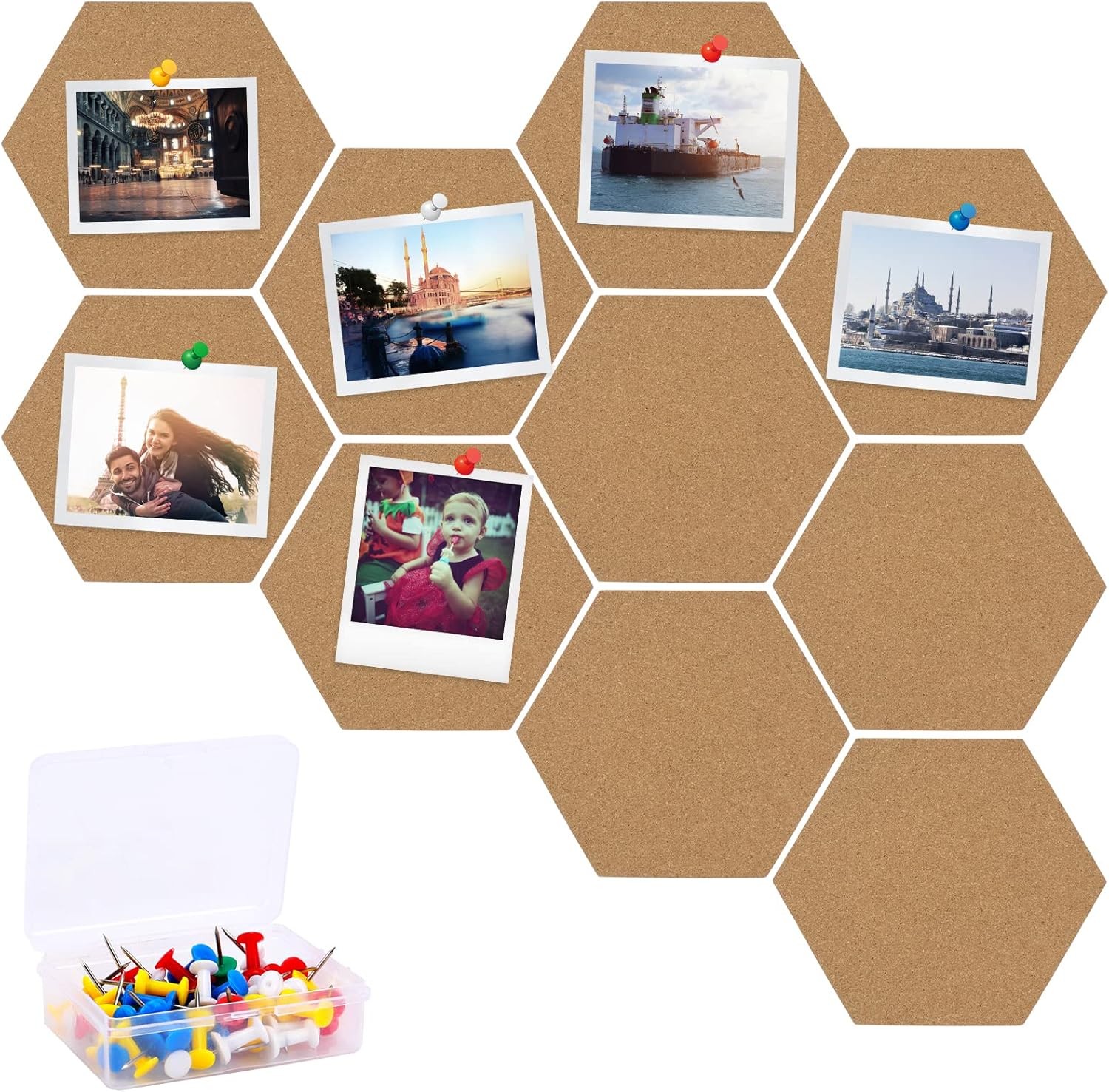 TOTSUN 10Pcs Hexagon Cork Boards, Self-Adhesive DIY Notice Board Hexagon Cork N