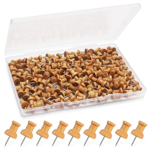 Namner 150 PCS Wooden Push Pins for Cork Boards, Natural Thumb Tacks Notice Board Pins with Storage Box, Drawing Pins, Strong Grip for Bulletin Boards, Maps & Crafts