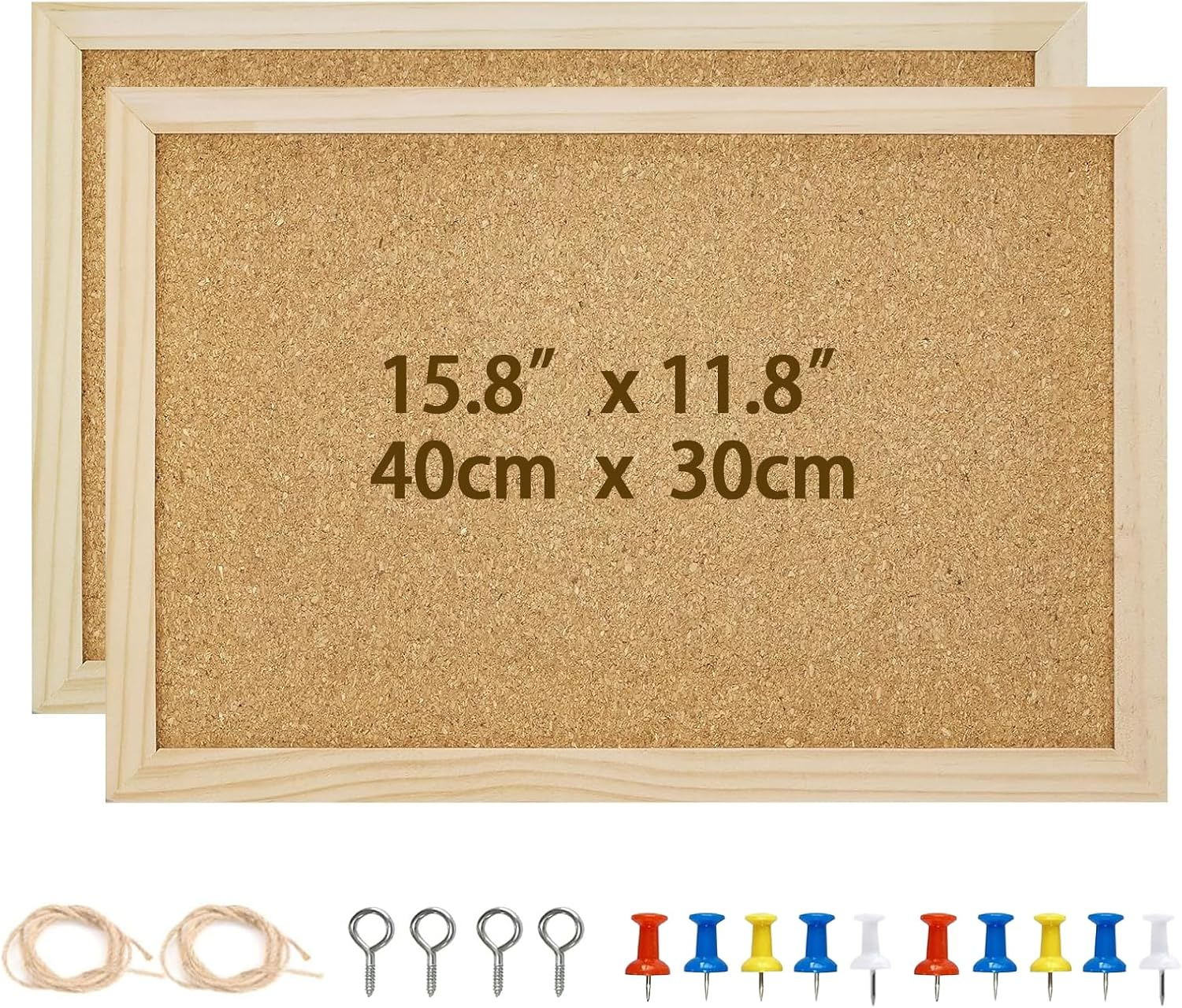2PCS Cork Board, Pin Board 40 X 30Cm Notice Board with 10 Pushpins and Two Set o