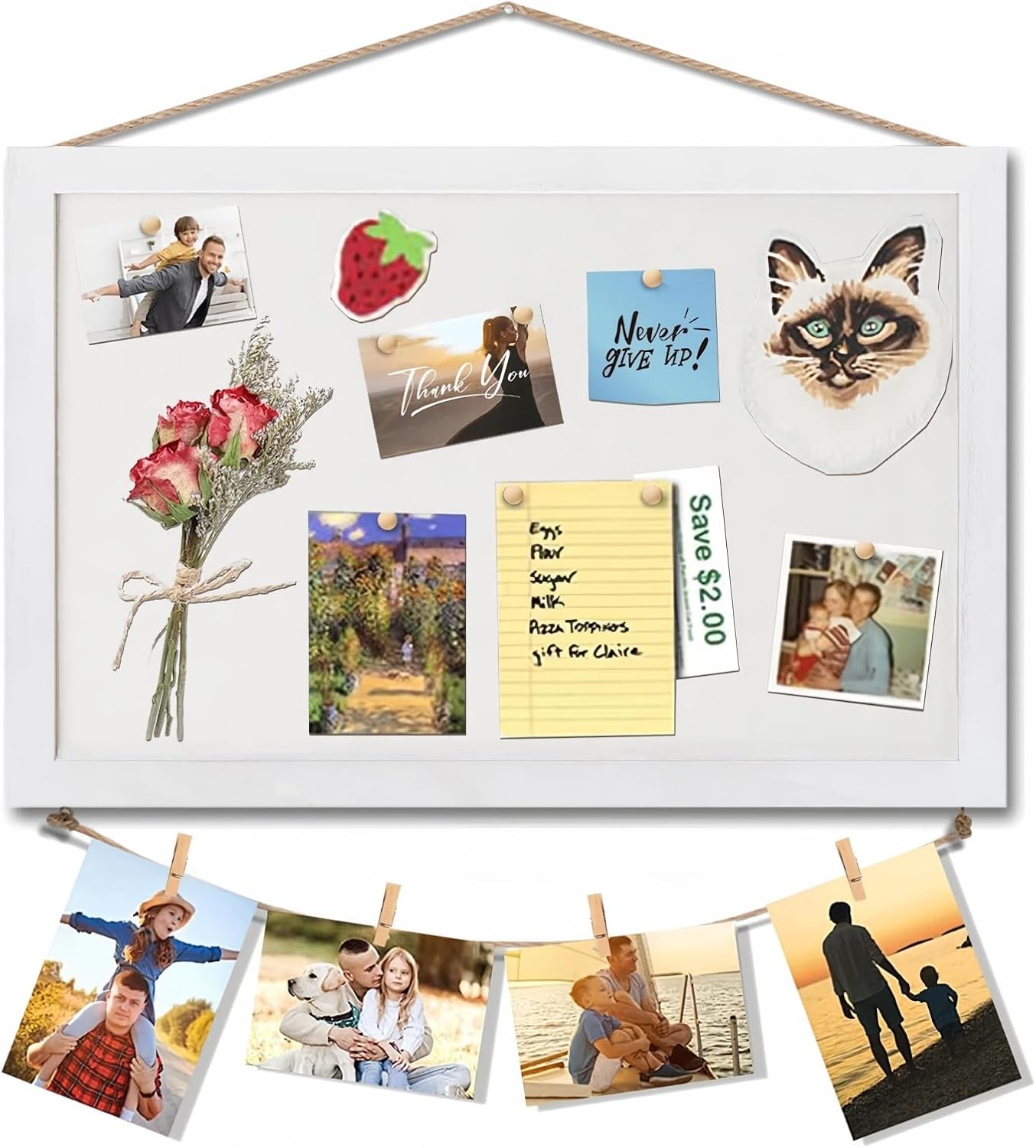 White Cork Board Pin Board, Small Cork Boards for Walls Wood Framed Display Han