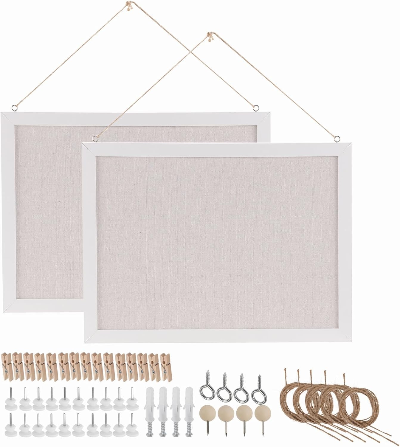 YUENPUN 2 Packs 30 x 40cm Cork Pin Board Double Sided with Linen, Hanging Cork