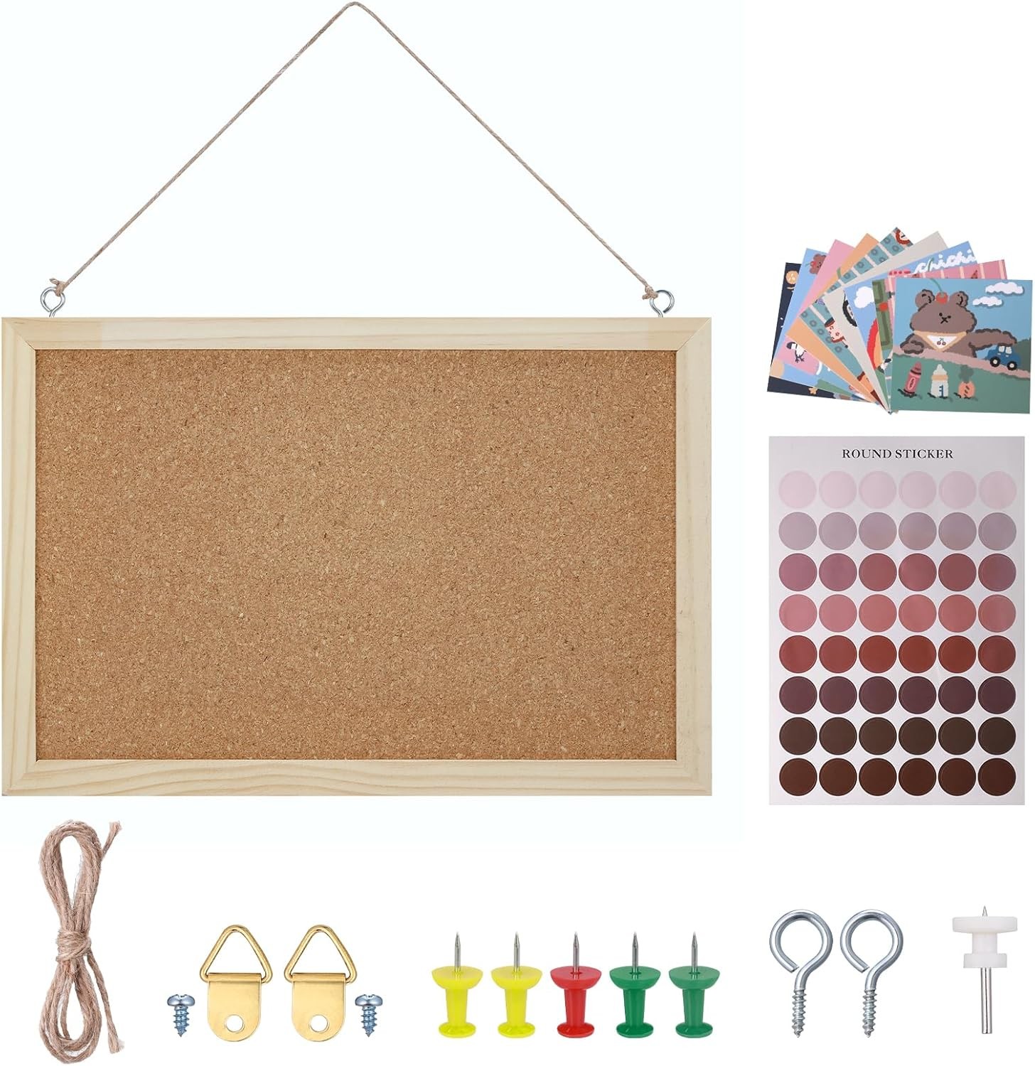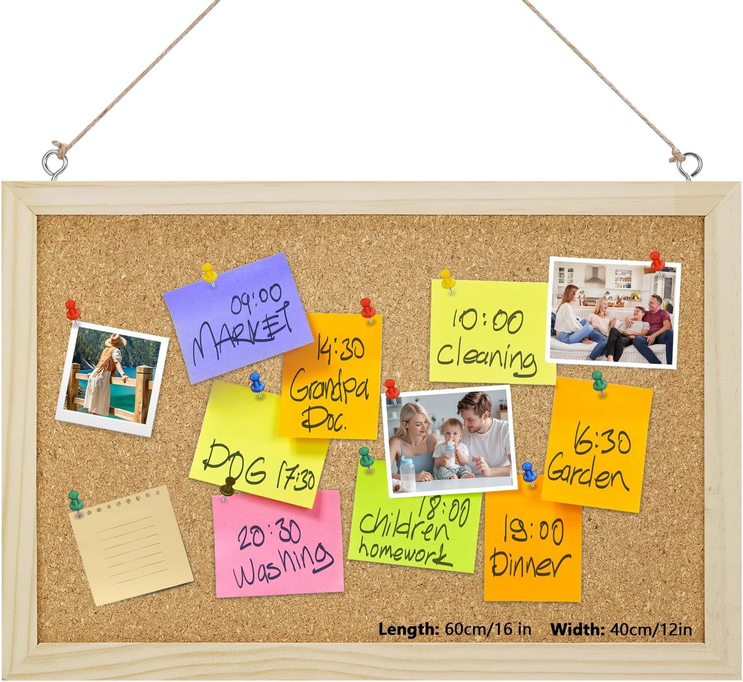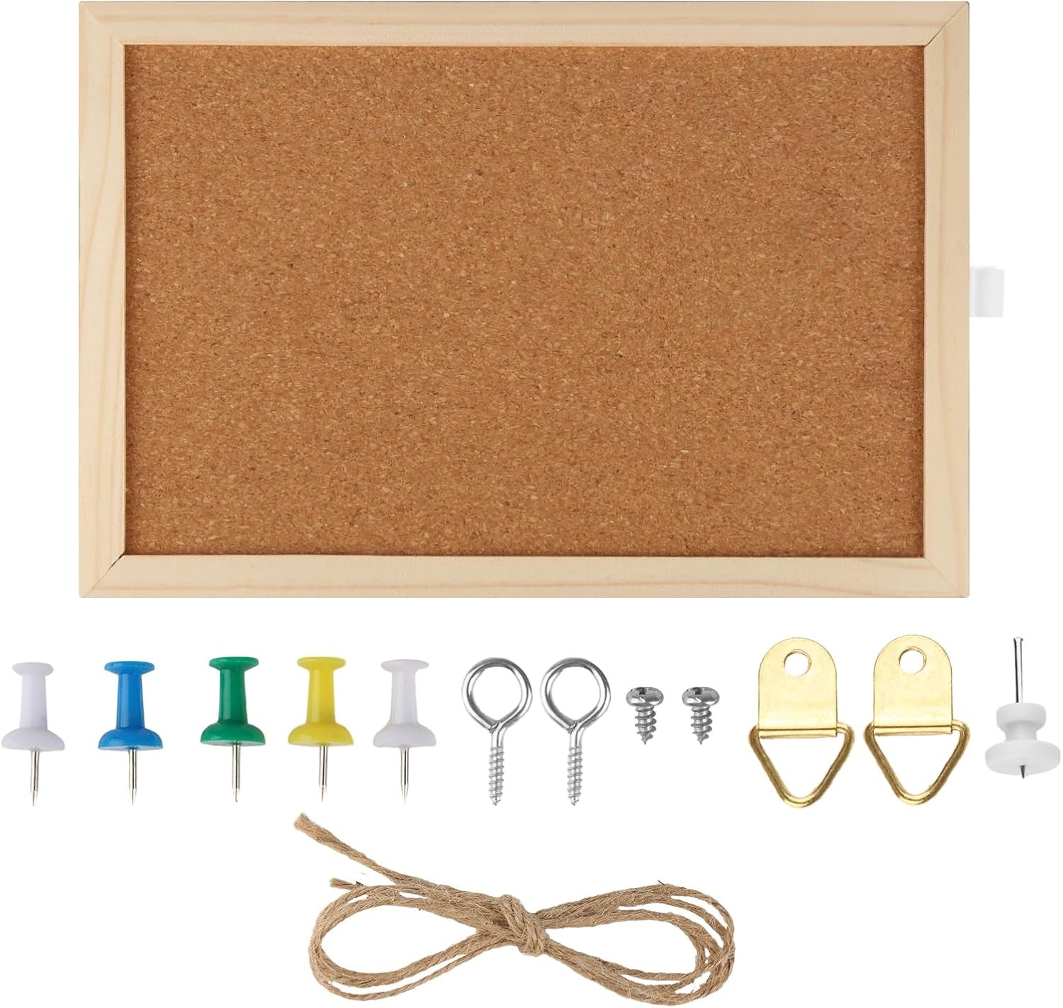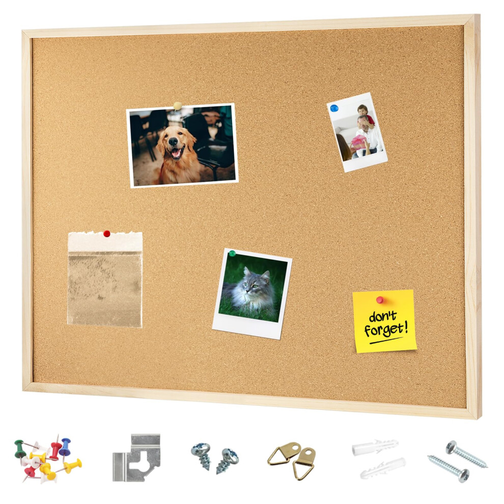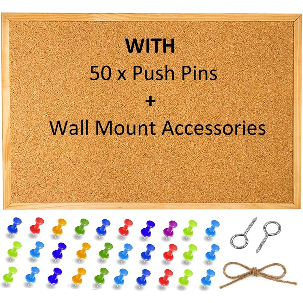 Cork Pin Board with Wooden Frame, Natural Cork Surface Cork Pin Board with Push