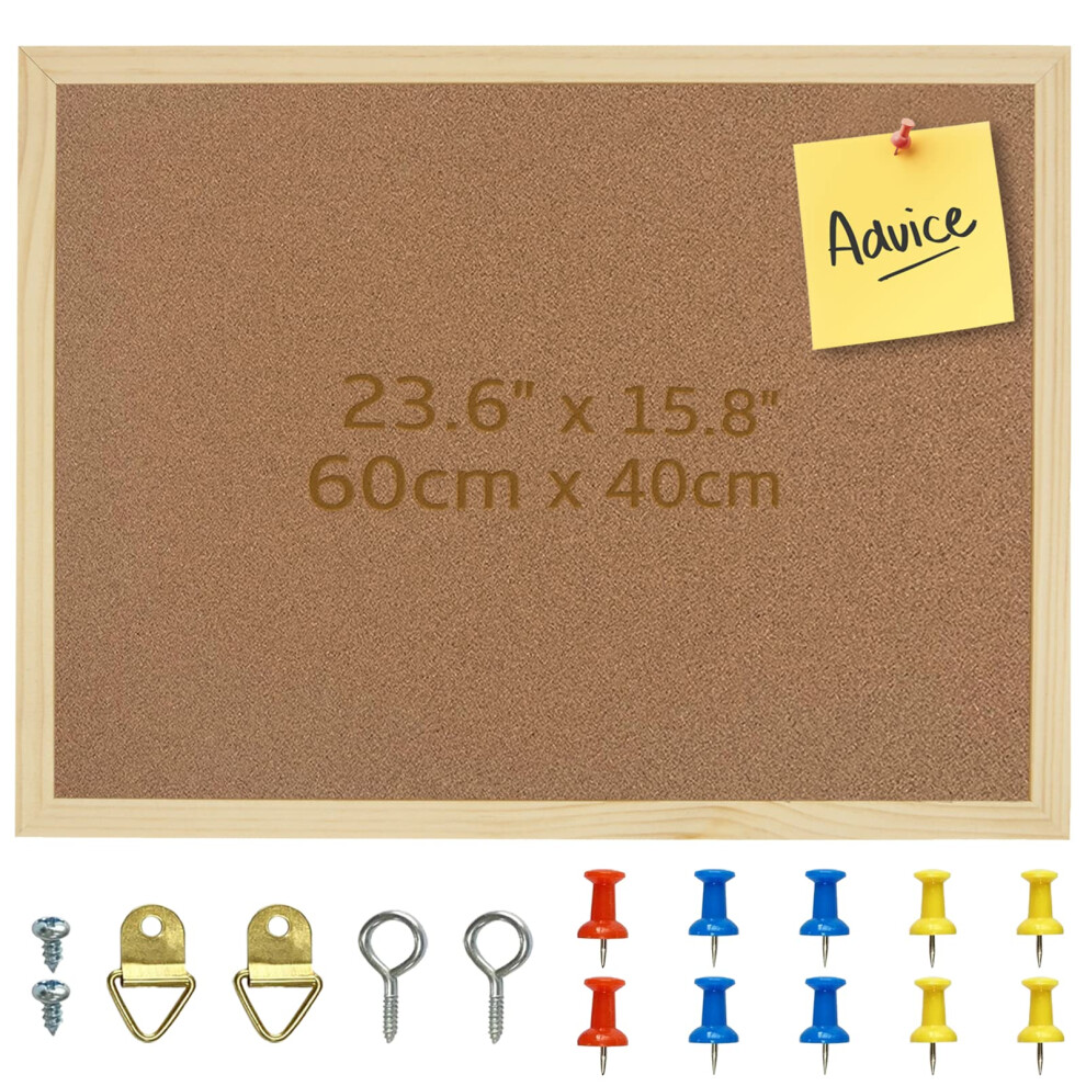 Cork Notice Pin Board Wooden Frame Corkboard Office Board Pin 60cm x 40cm
