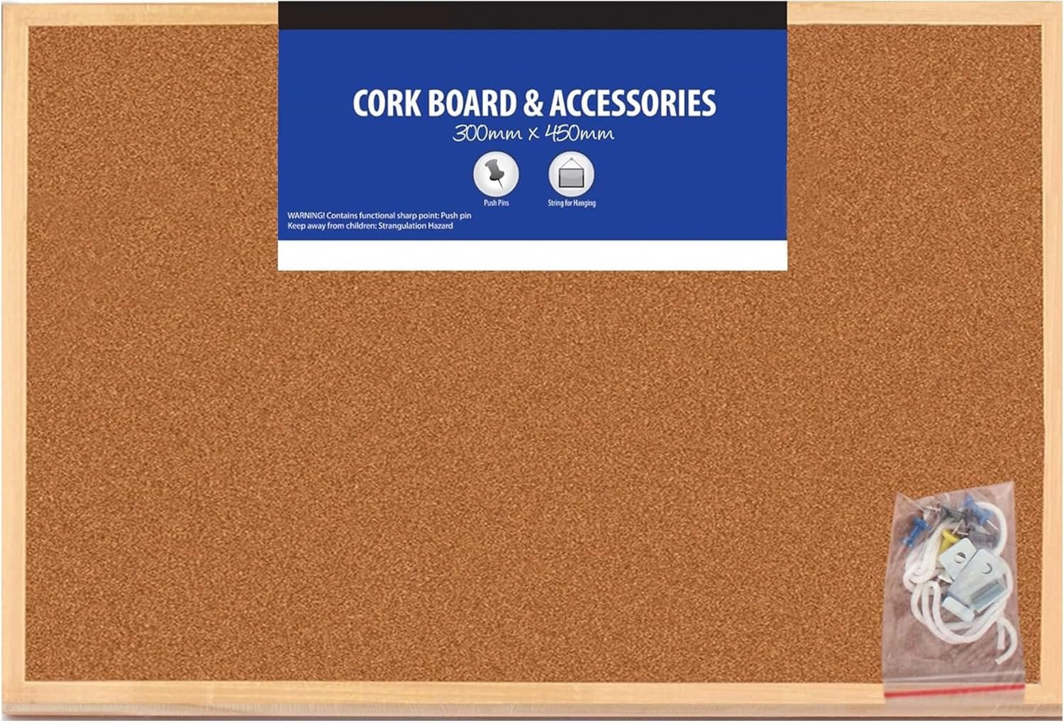Cork Board 30 X 40 Cm, Cork Pin Board with Wooden Frame, Bulletin Notice Office
