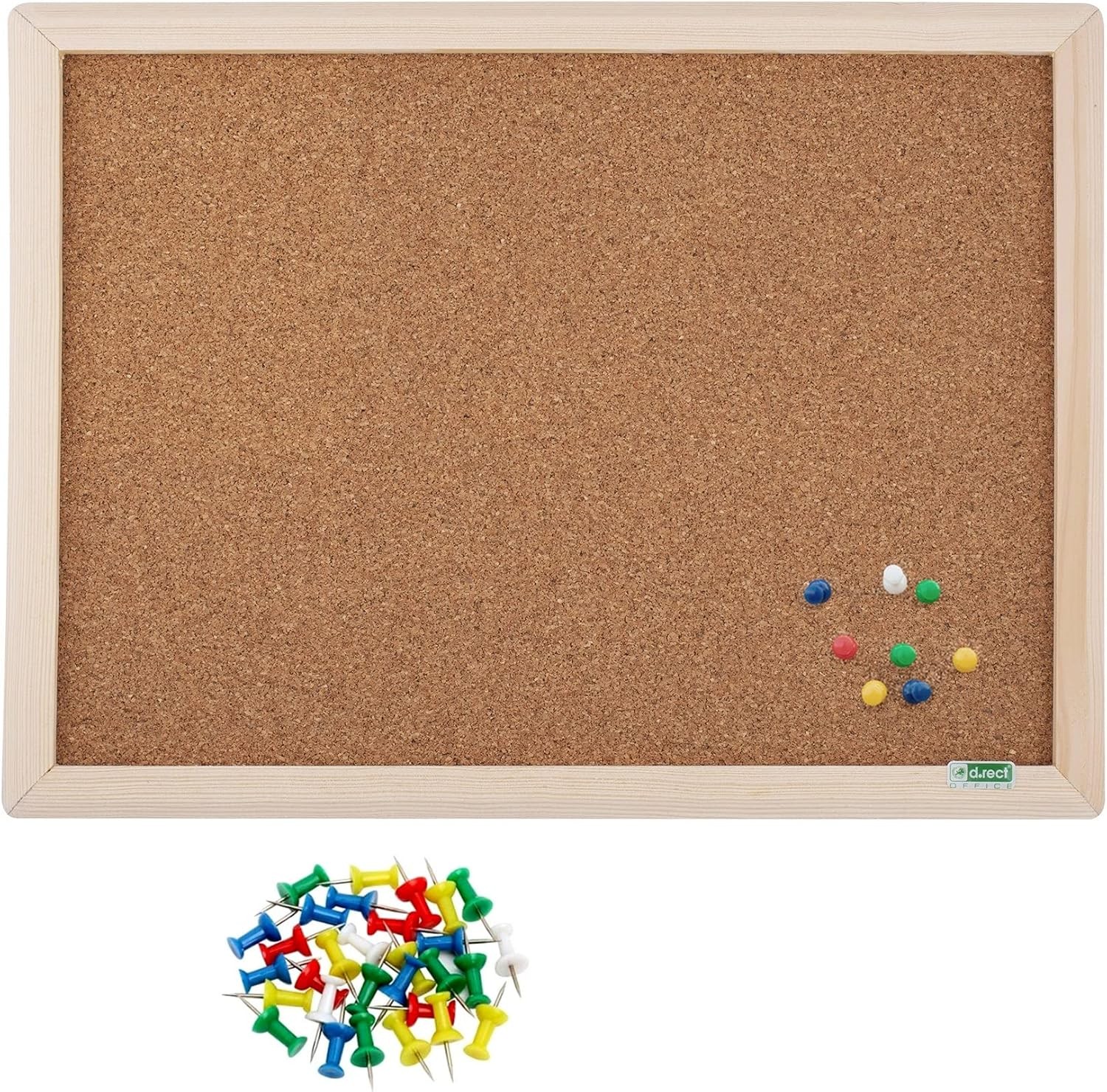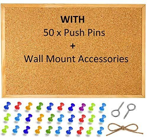 Cork Board 40CM x 60CM Pin Notice Office Memo School with Push Pins Board Requisite Needs Wooden Natural Frame Board
